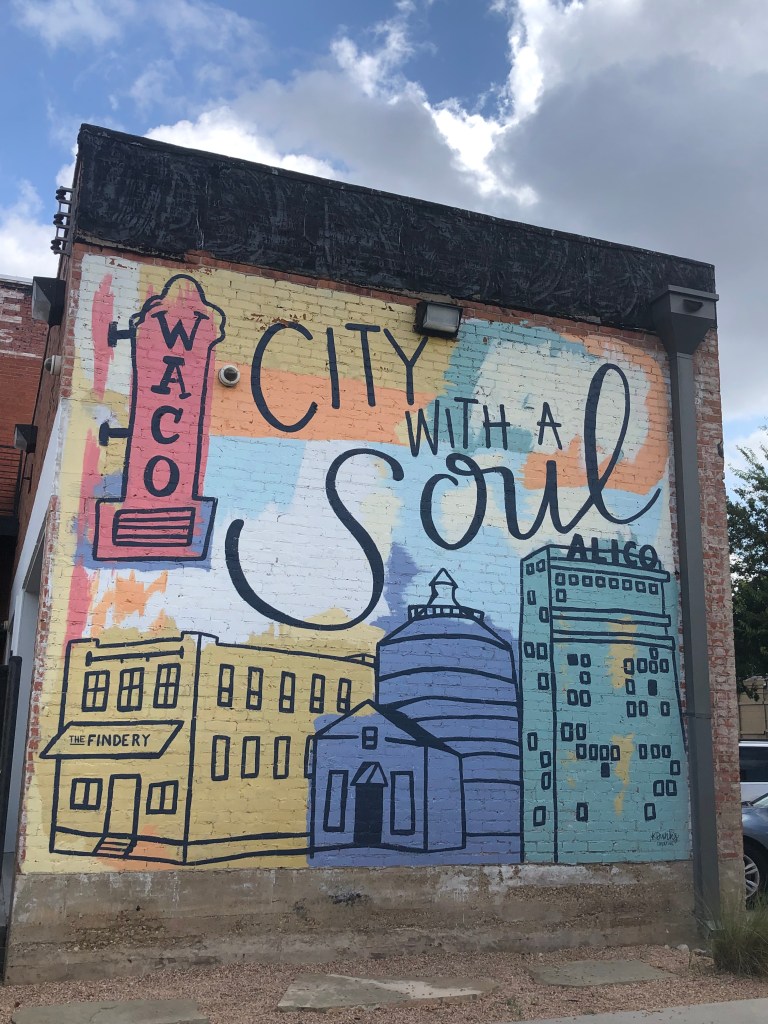Visiting Waco on a Saturday in September, we knew we had to get an early start to arrive before the Magnolia attractions got too crowded. We ate breakfast at our hotel and drove nearly 2 hours to Waco. The time went quickly as we chatted.