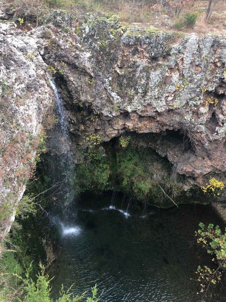 Natural Falls State Park is located near the border of Oklahoma and Arkansas. The park is only an hour away from our home in Fayetteville, Arkansas. The main attraction is a 77-foot waterfall which you can enjoy from observation platforms above and below the falls along the Dripping Springs Trail.