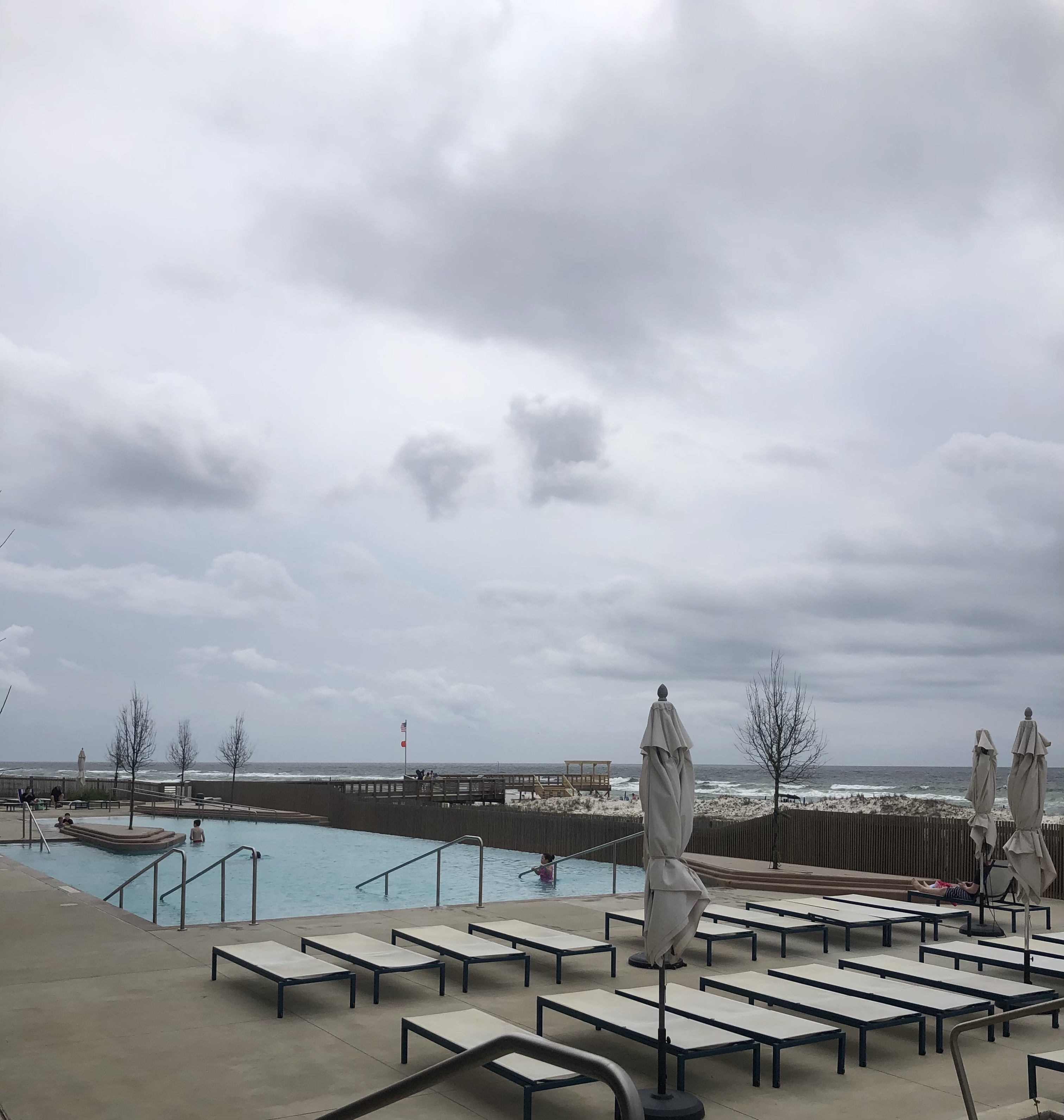 The average temperature in Gulf Shores, Alabama in March is between 58 and 70 degrees F according to weather-us.com. The beautiful outdoor pool was not heated, but our girls were brave and enjoyed splashing around in the pool almost as much as they liked playing in the waves of the Gulf of Mexico.