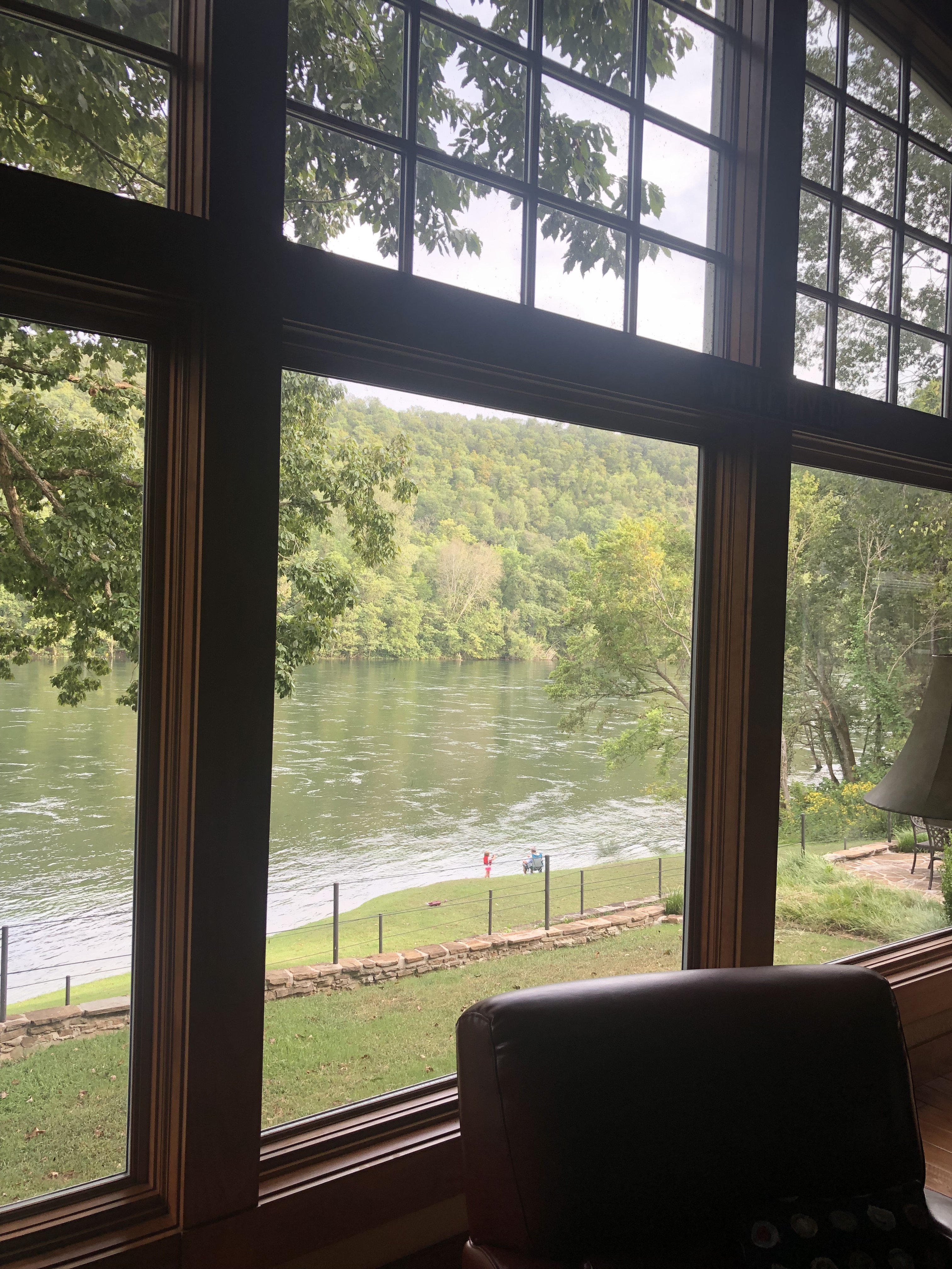 The house had amazing views of the river from inside as well. The owners did a fabulous job of creating little sitting spots to take in views, read a book, or sip a cup of coffee or glass of wine. I also loved the long dining table that fit all ten of us comfortably for evening meals.