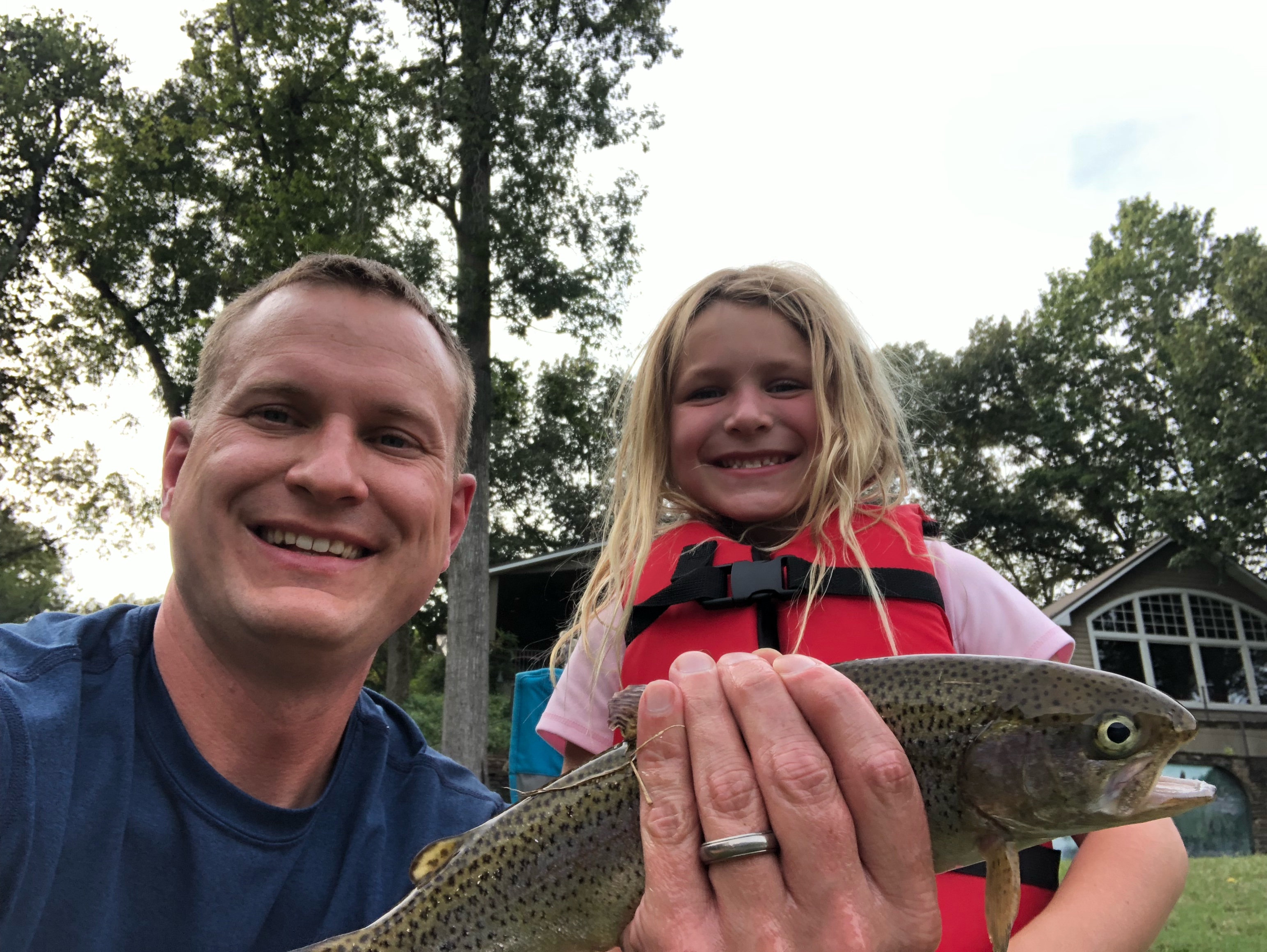 Our girls were excited to catch and release a few beautiful trout. ‘Nearby towns include Cotter, The Trout Capital USA.’ according to the VRBO listing. This property is also located near Gaston’s, a well-known fishing resort with a restaurant. There was a Walmart nearby for grocery shopping where we picked up food and other essentials like bait.