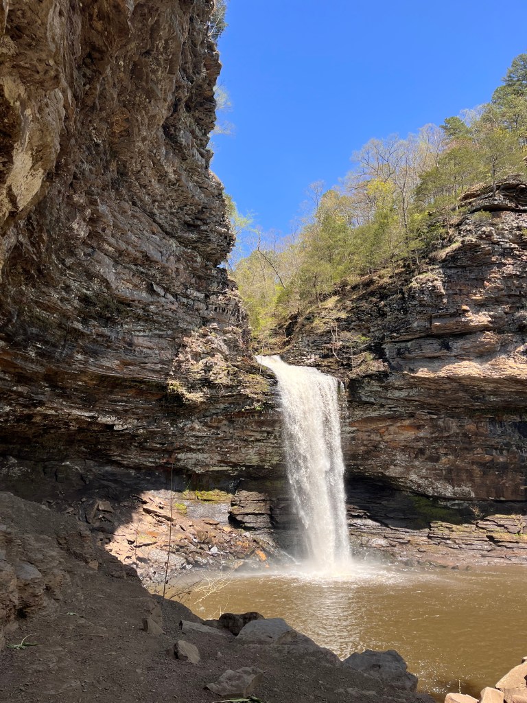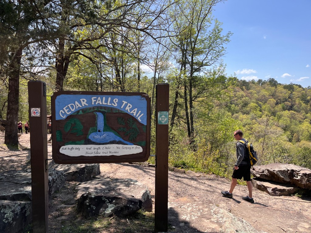Cedar Falls is worth the effort. According to the park’s website the falls measures 95-feet making it one of the ‘tallest continuously flowing waterfalls in the state.’ We hiked in April after recent rain storms so the water flow was spectacular.