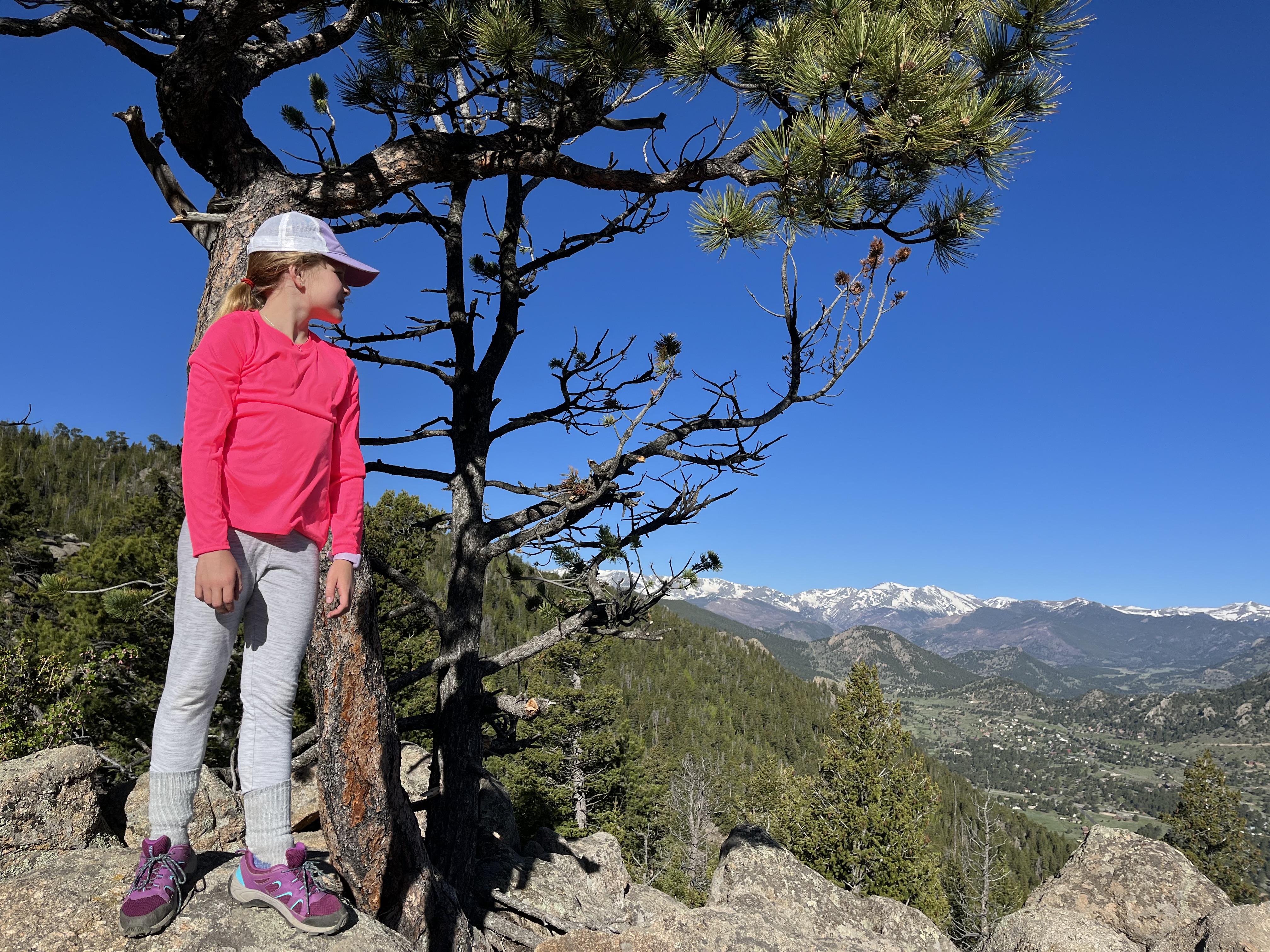 Continue up the trail to find a series of rock outcroppings ideal for catching your breath and taking in the wide views of the Estes Valley.