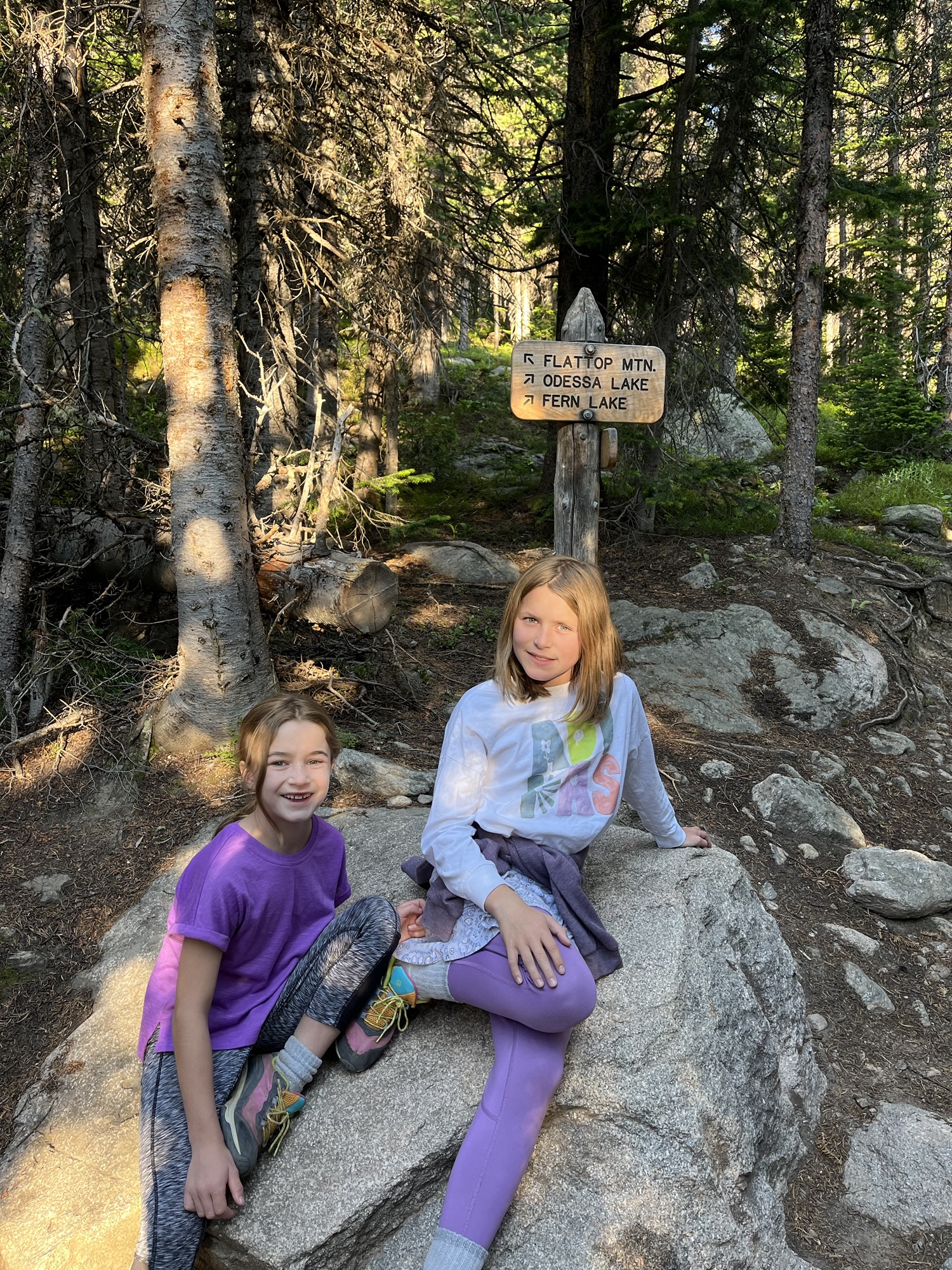We typically get the girls trail tags when they complete new hikes. This hike isn’t in Rocky Mountain National Park, so we couldn’t find a badge to add to their collection – bummer! Instead, we celebrated our long hike with a family dinner at Poppy’s Pizza in downtown Estes Park and topped it off with a scoop of ice-cream at Hayley’s.