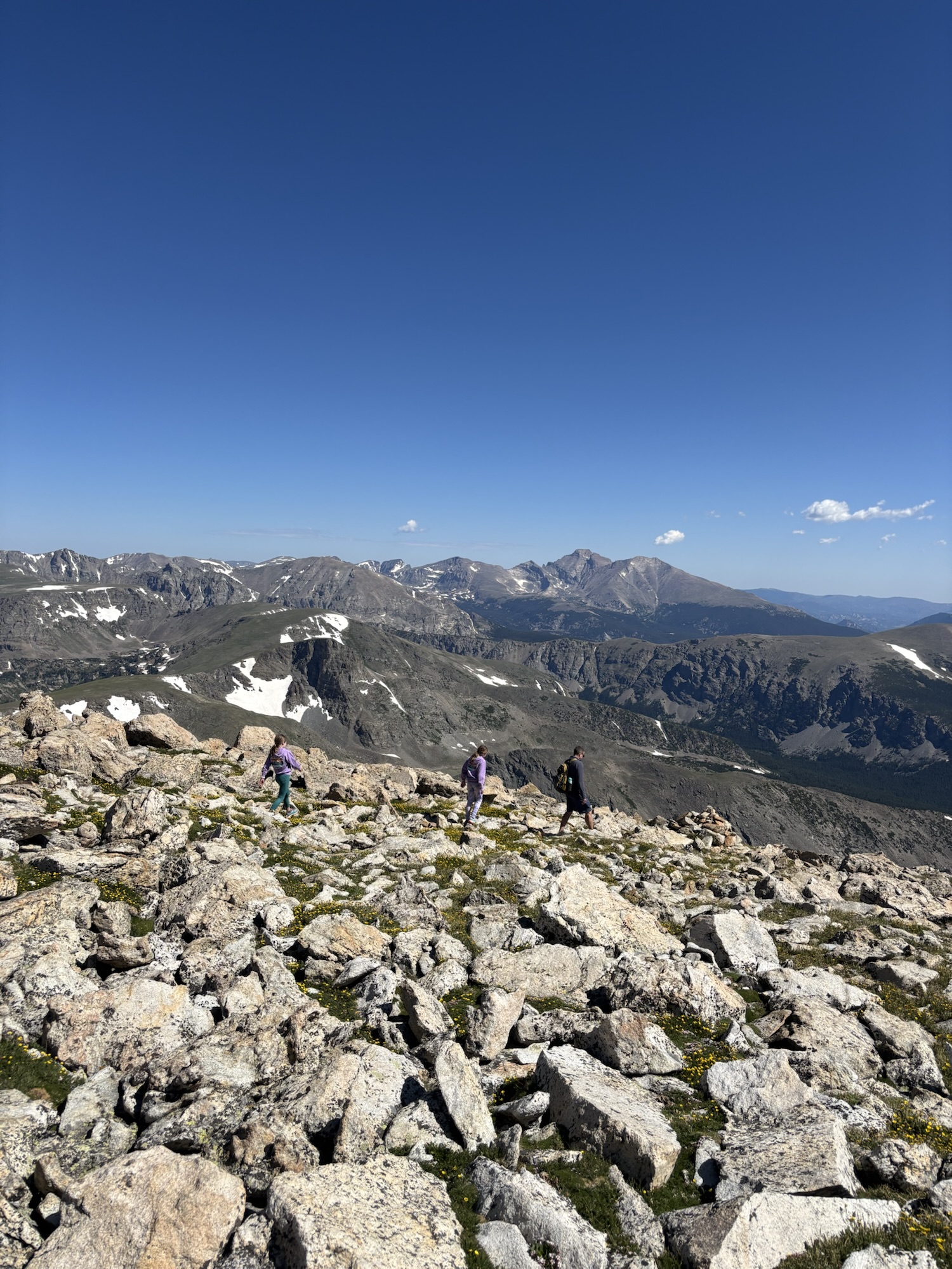 We started our hike around 7 am so that we could get to the summit before noon. We enjoyed bright blue skies and clear views. It’s important to start early because much of this hike is above the tree line. Afternoon storms rolled in soon after we finished our descent.